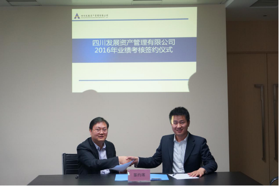 為了保證2016年度經(jīng)營(yíng)目標(biāo)順利實(shí)現(xiàn),建立完善的績(jī)效管理體系和激勵(lì)約束機(jī)制。2016年4月19日,四川發(fā)展資產(chǎn)管理有限公司舉行了簽約儀式,由蒙宇總經(jīng)理與業(yè)務(wù)團(tuán)隊(duì)分別簽署了《2016年度目標(biāo)責(zé)任書(shū)》。川發(fā)資管公司董事長(zhǎng)楊朝暉及其他領(lǐng)導(dǎo)班子和全體員工參加了簽約儀式。