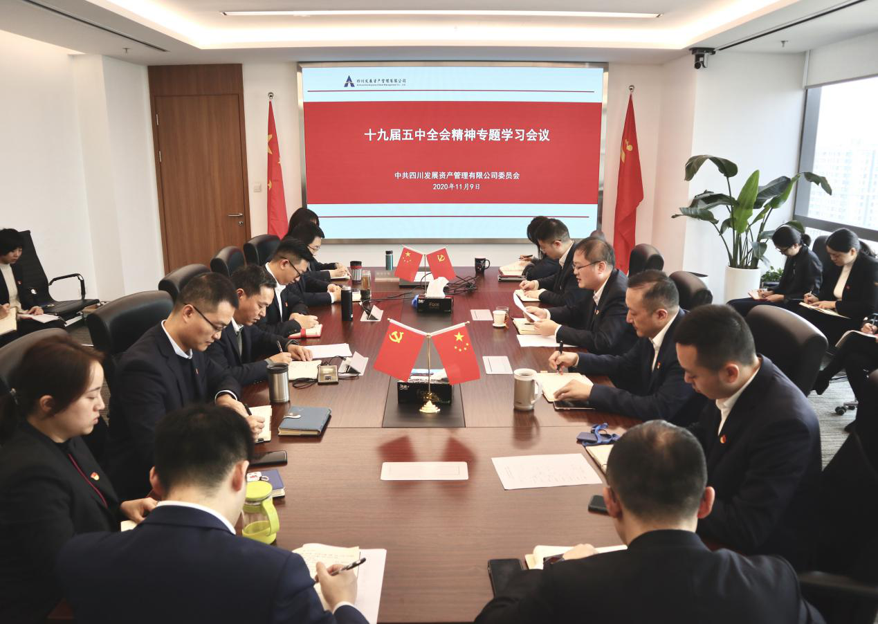 11月9日上午,四川發(fā)展資產管理有限公司黨委召開專題會議,傳達學習黨的十九屆五中全會精神。黨委副書記、總經理蒙宇主持會議并講話。公司在家領導、總經理助理、部門負責人、全體黨員和職工代表參加了學習。