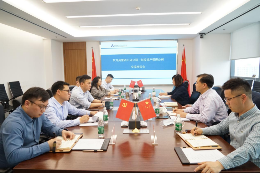 東方資管四川分公司黨委委員、紀(jì)委書記張欣,川發(fā)資管總經(jīng)理彭扶民、財(cái)務(wù)總監(jiān)詹蕓等相關(guān)部門負(fù)責(zé)人參加座談會(huì)。